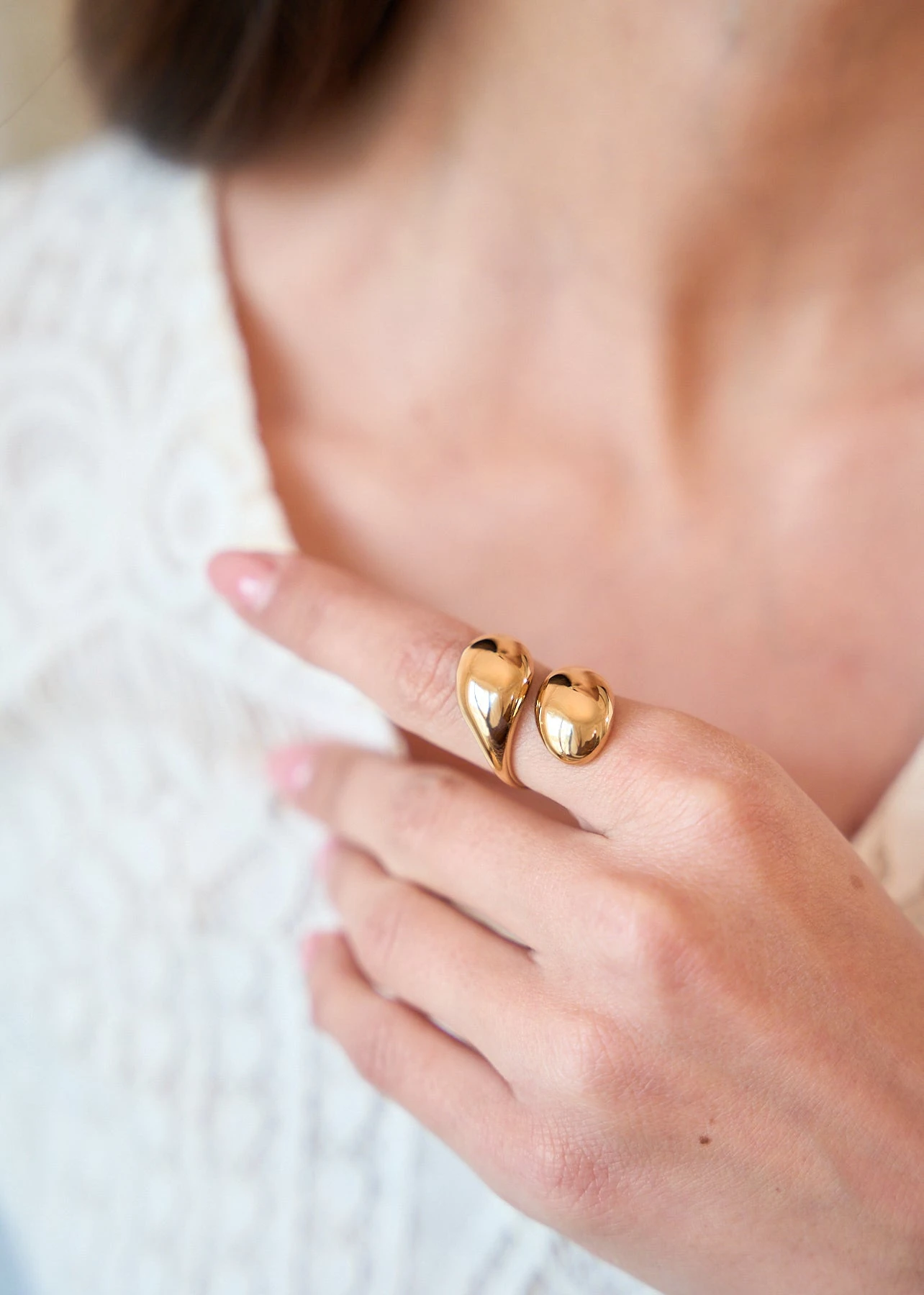 – Bague double goutte ouverte fini miroir