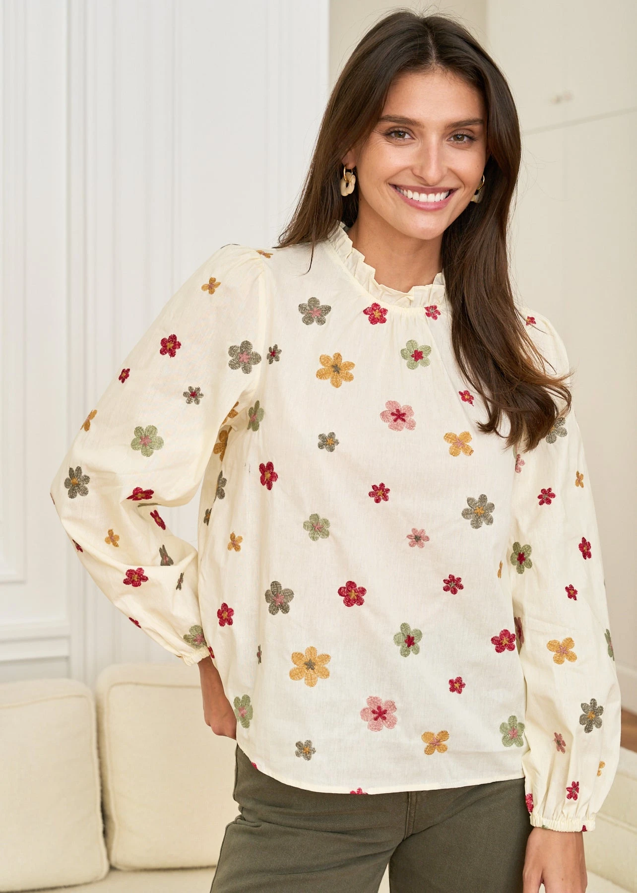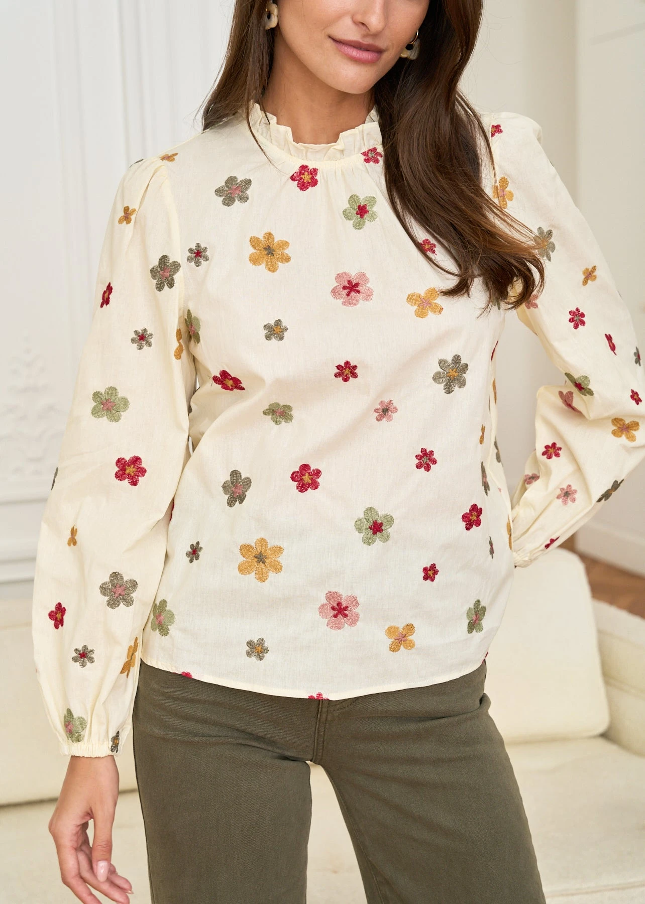 | Couleur | Fleuri Fond beige – Blouse Iris |