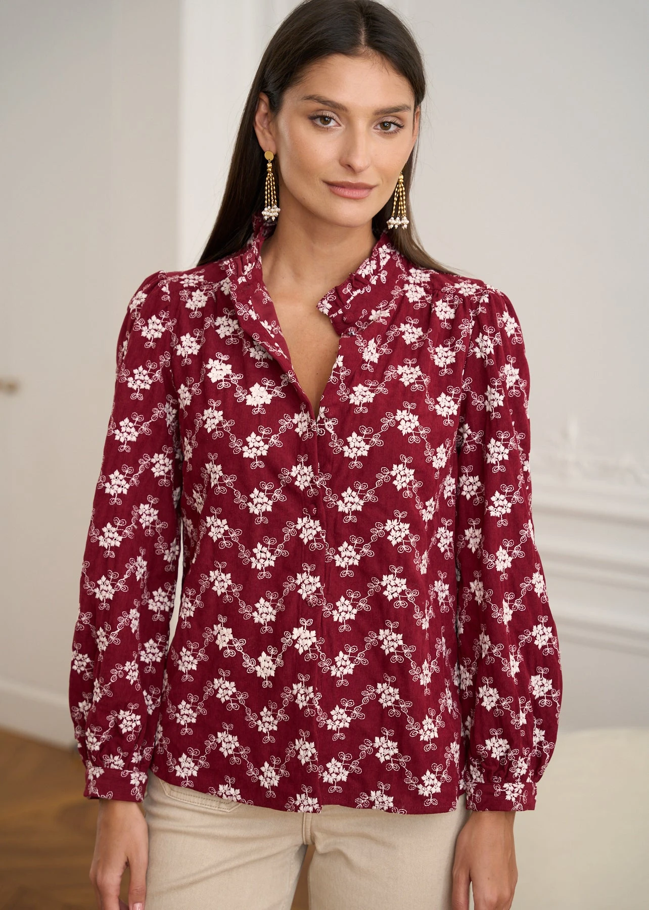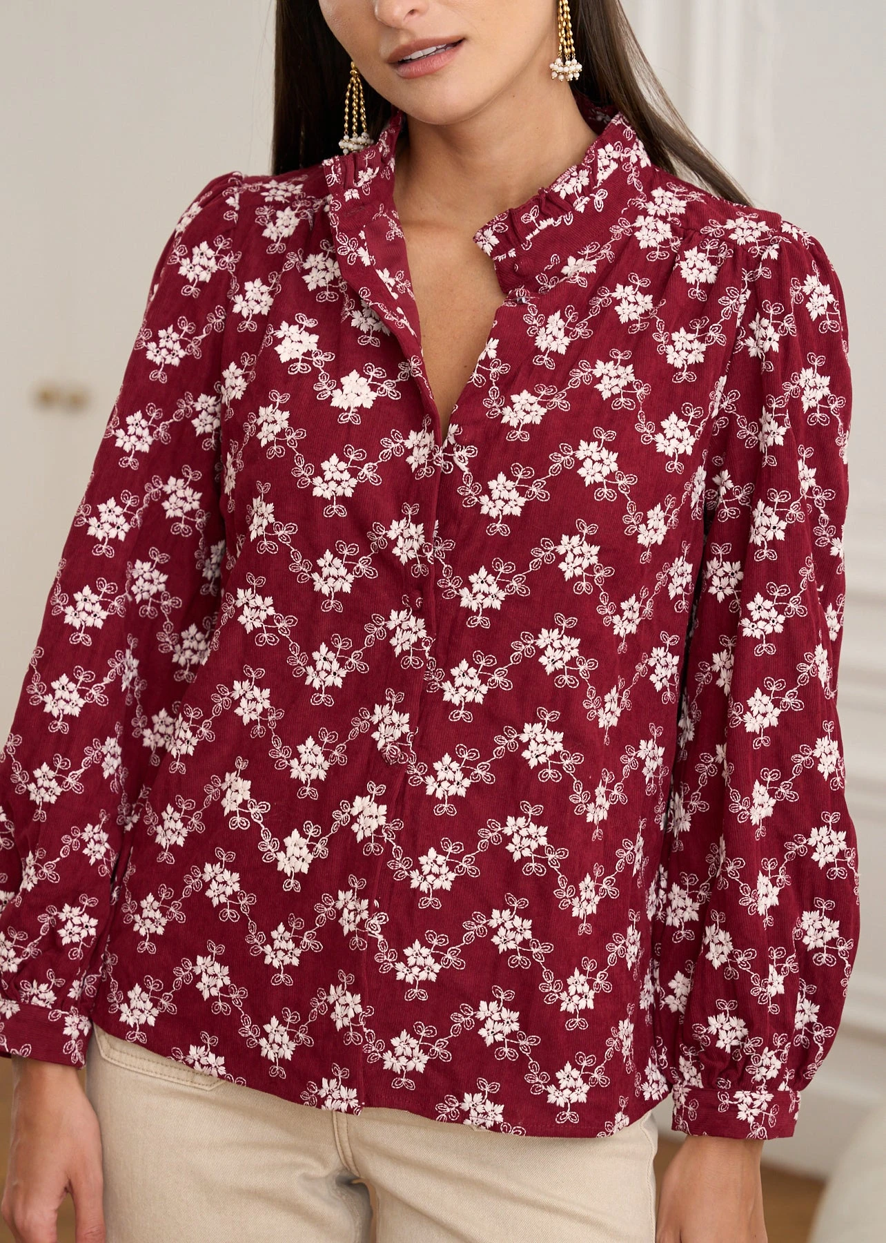 | Couleur | Bordeaux Ecru – Blouse Solange |