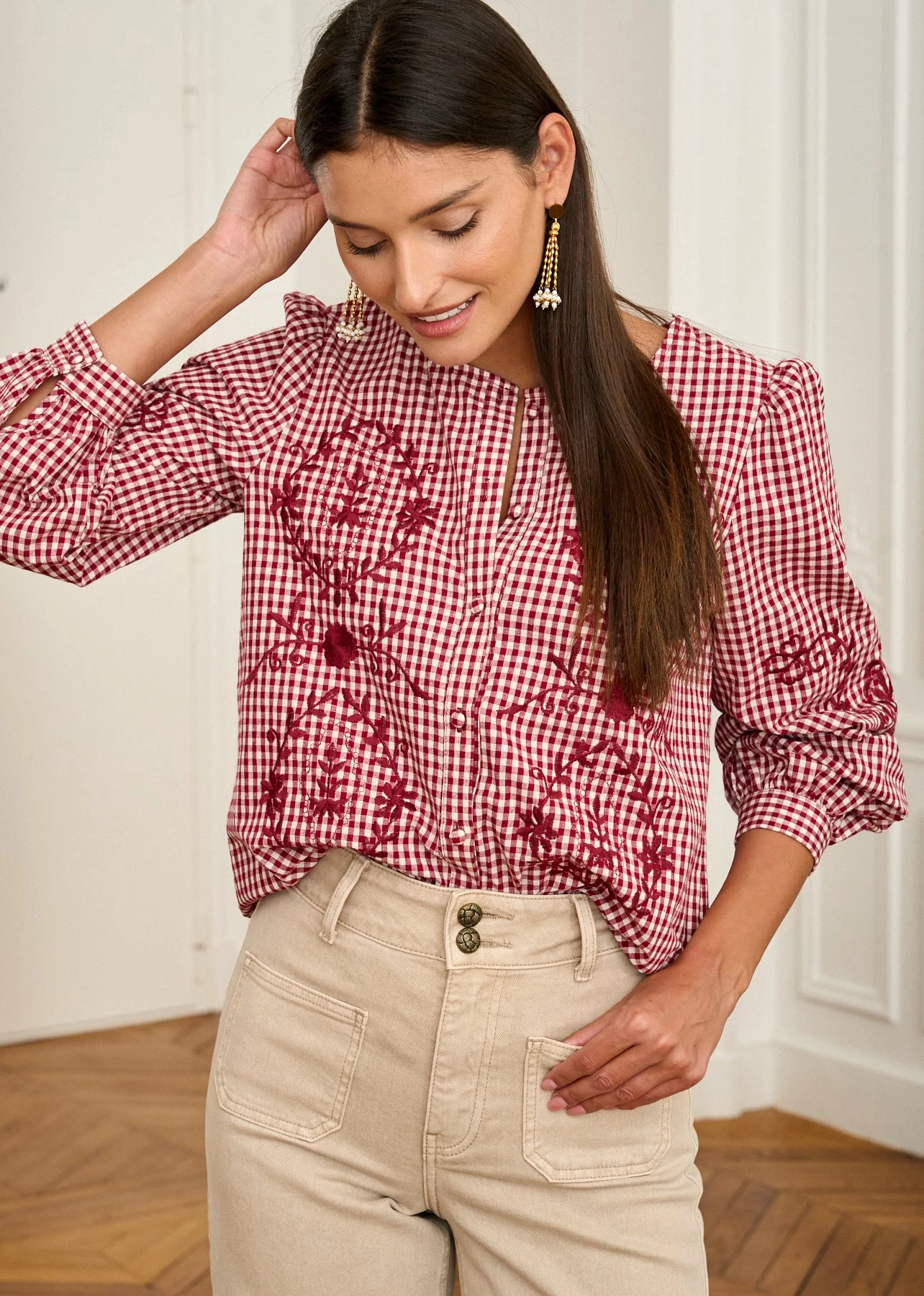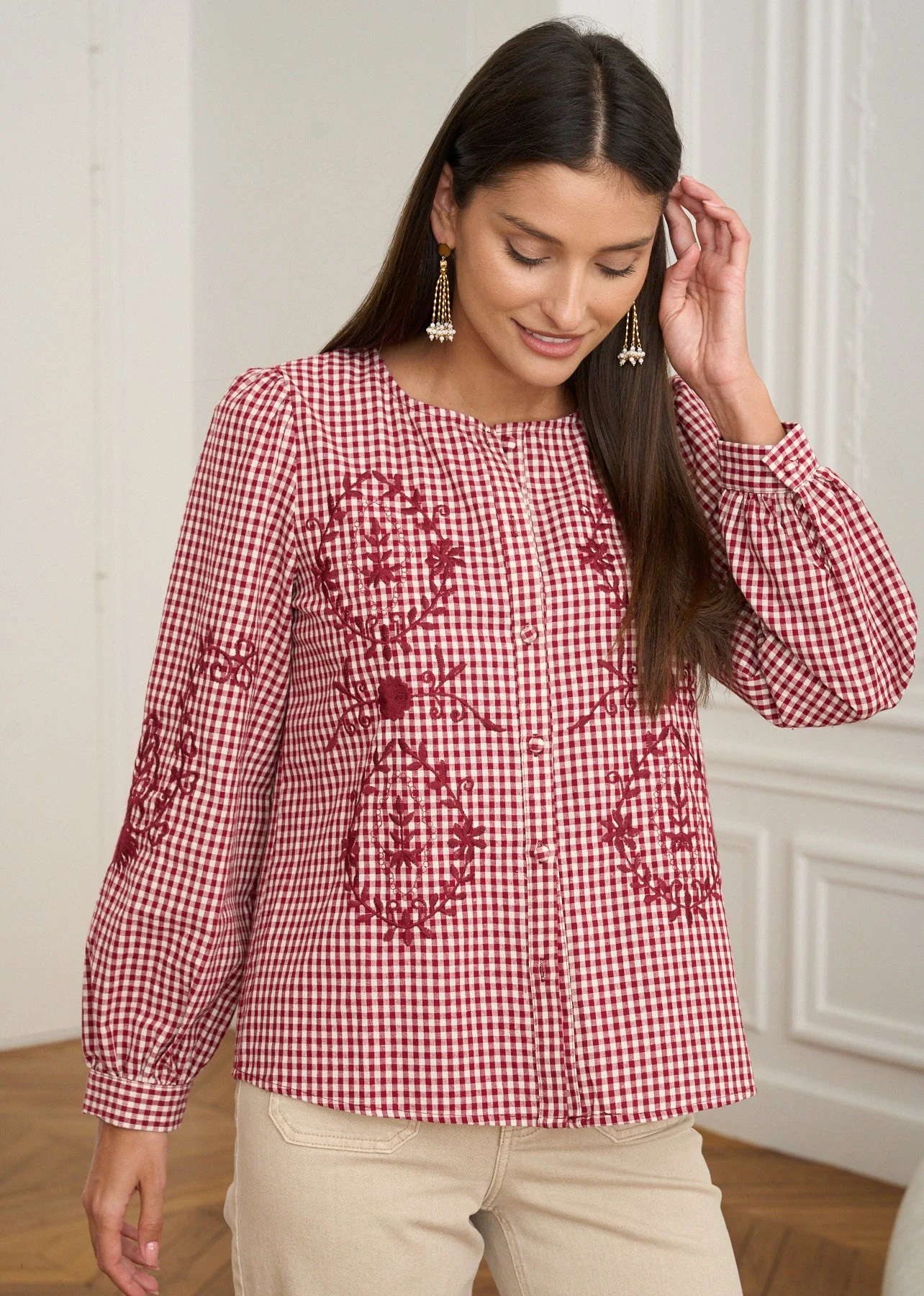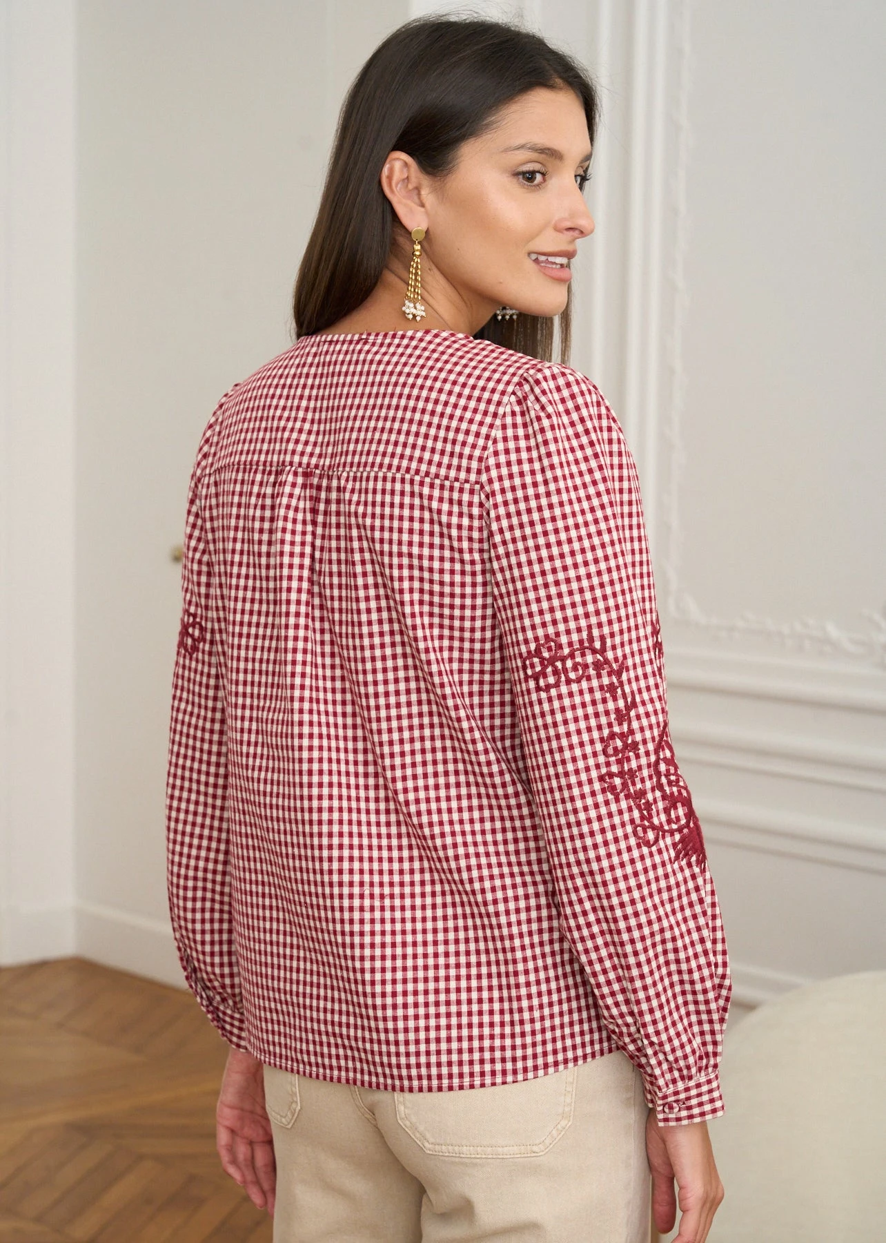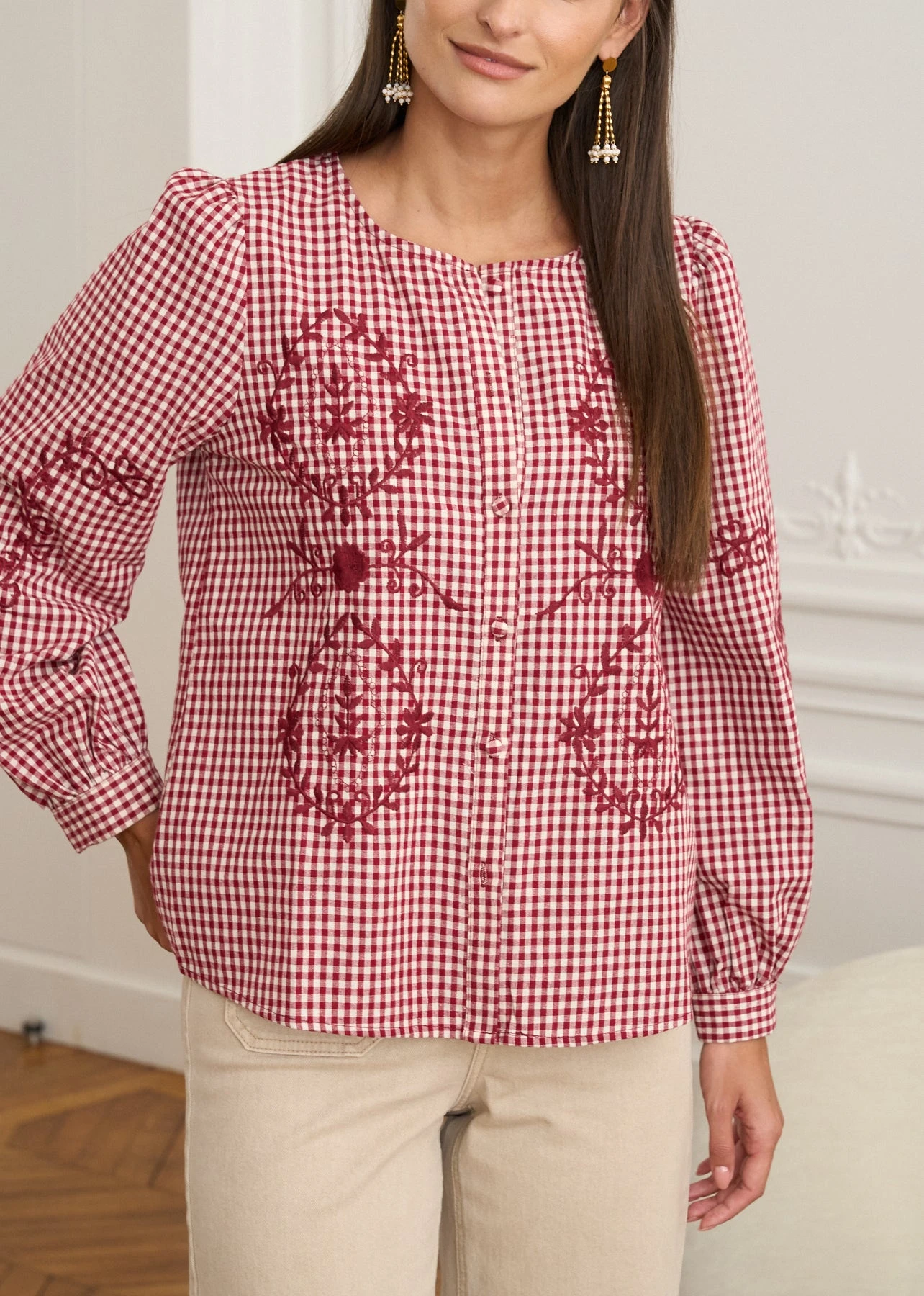 | Couleur | Vichy Bordeaux – Blouse Ysaline |