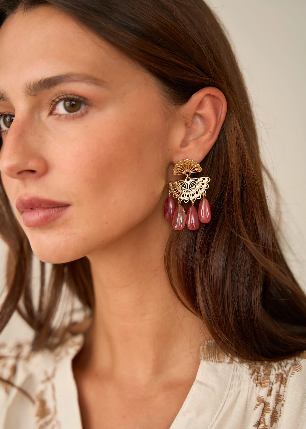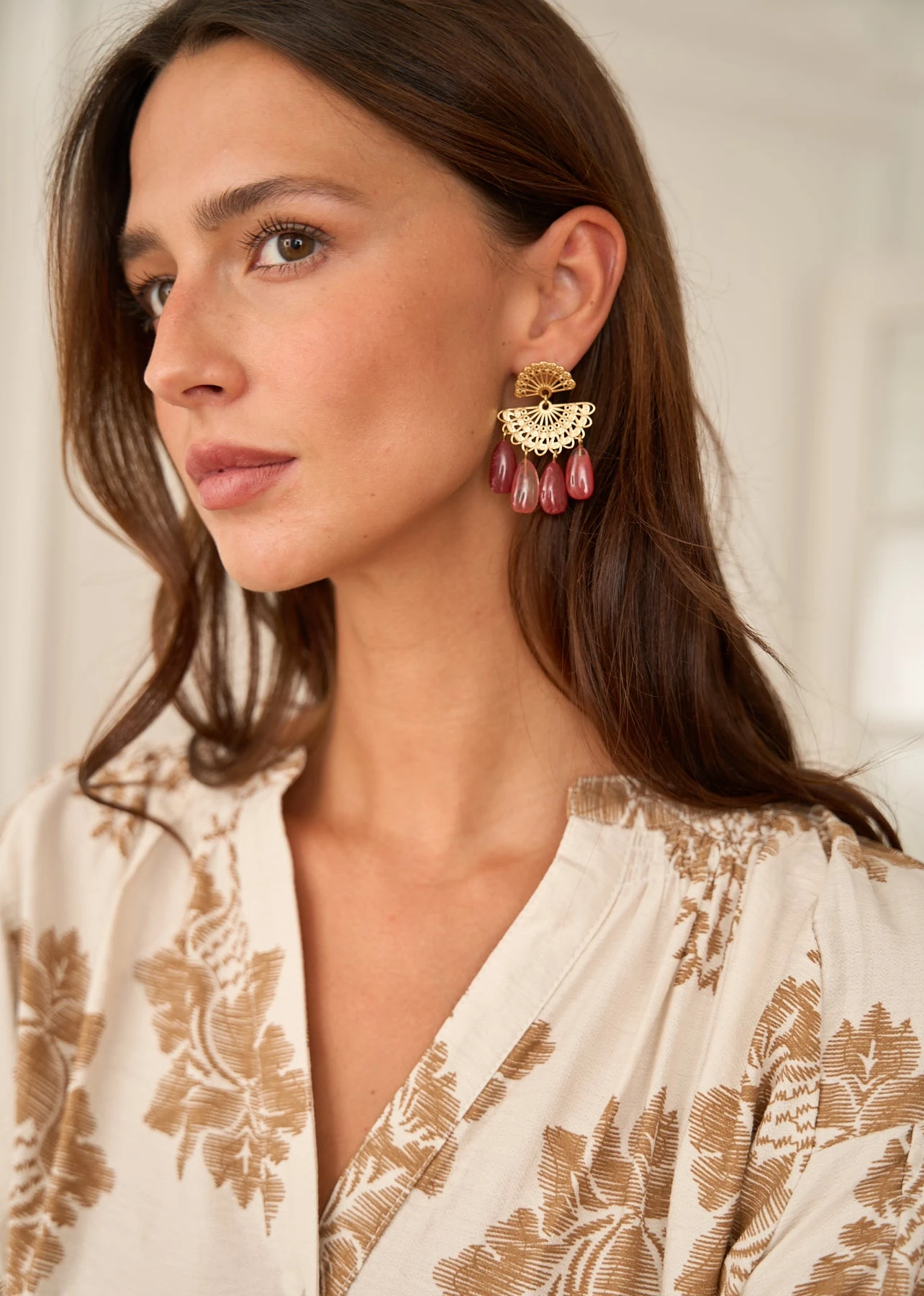 – Boucles d’oreilles pendantes rosace avec gouttes