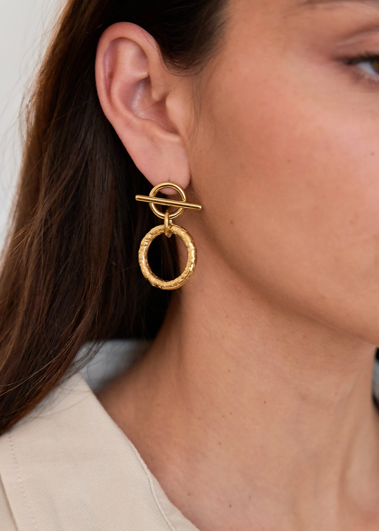 – Boucles d’oreilles puces anneau batônnet avec cercle martelé