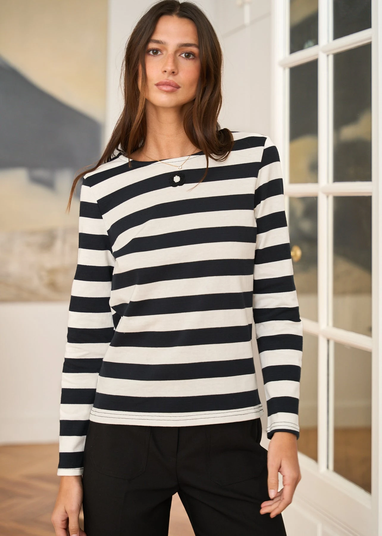 | Couleur | Rayé Noir Ecru – Pull Lola |