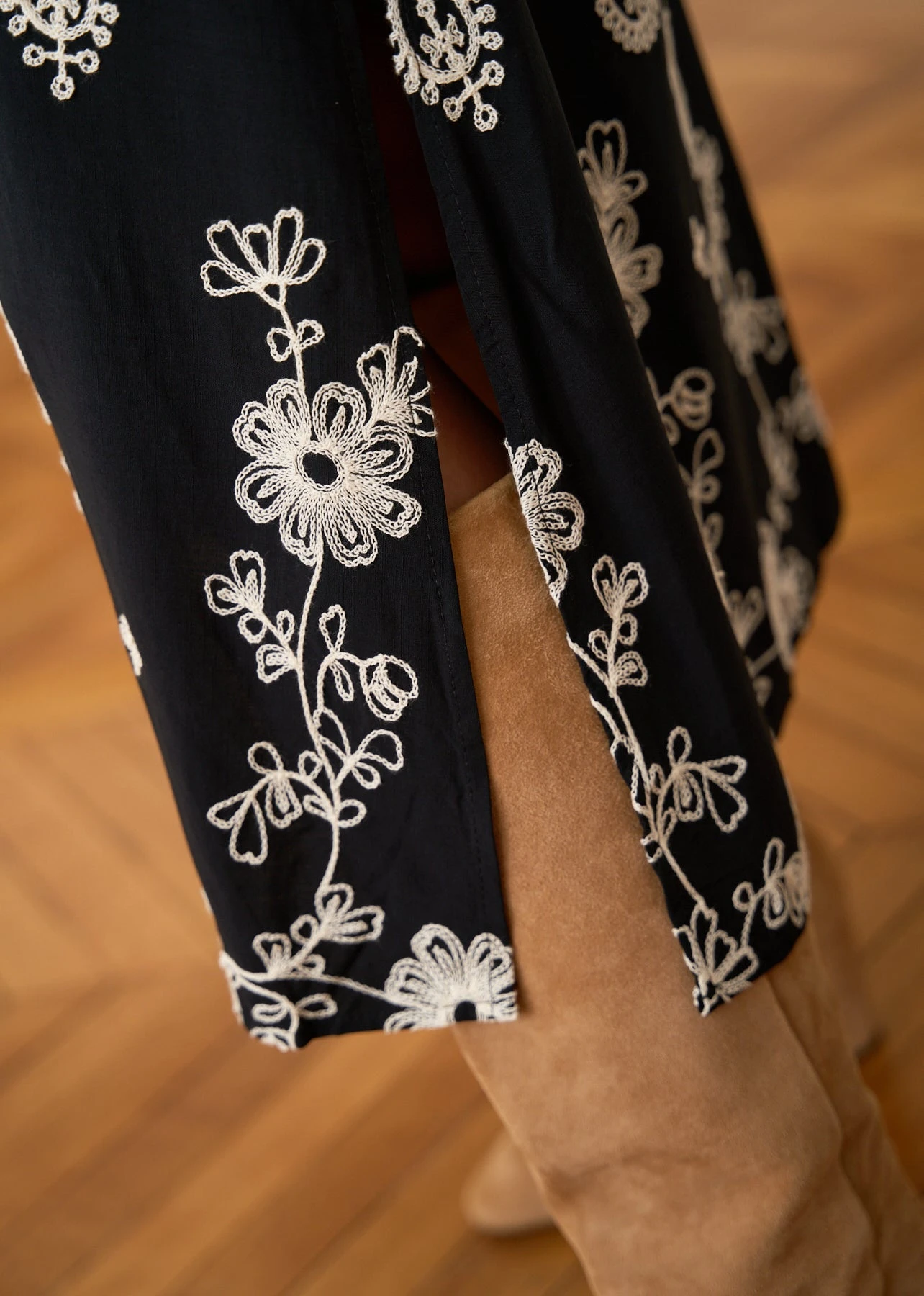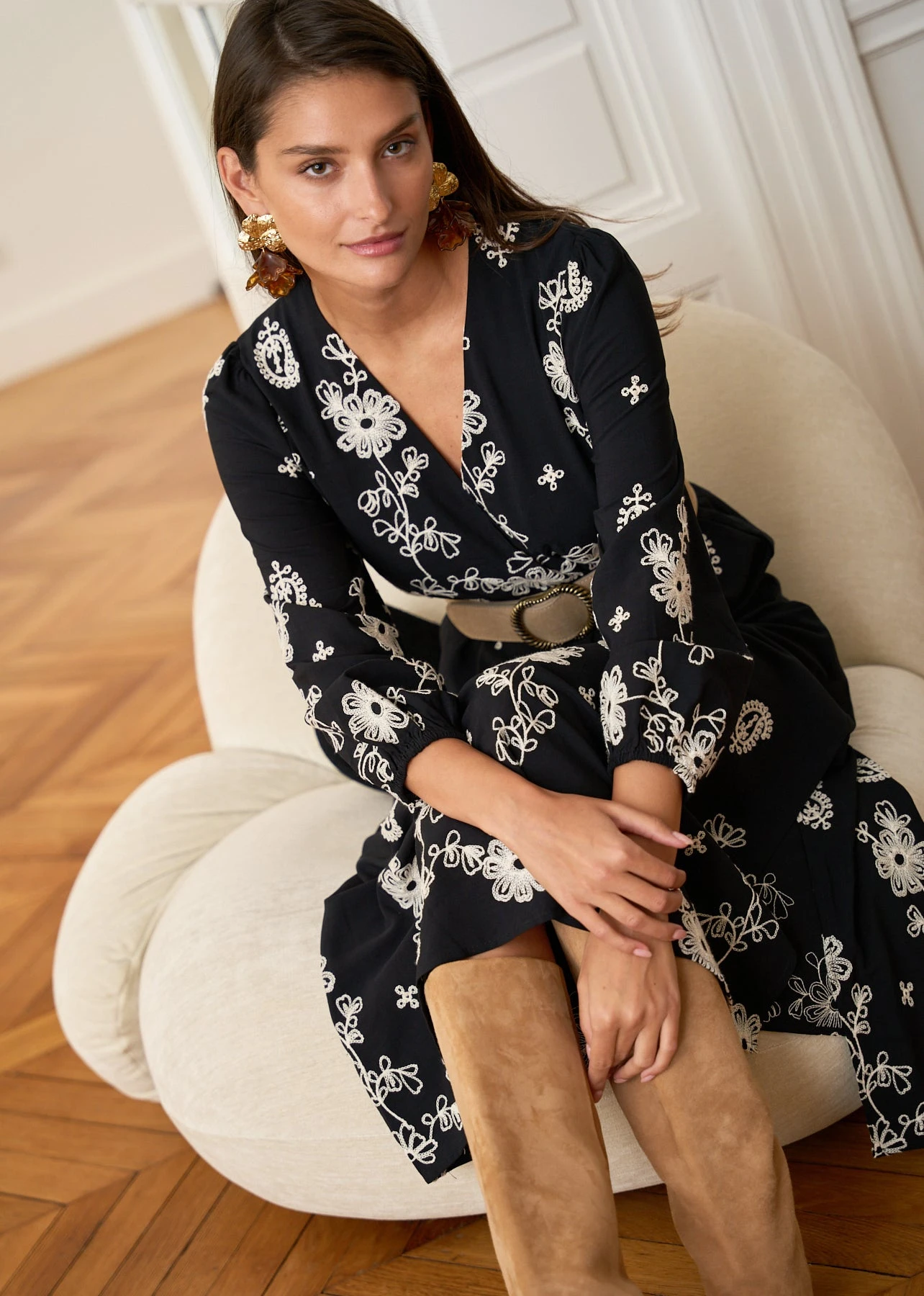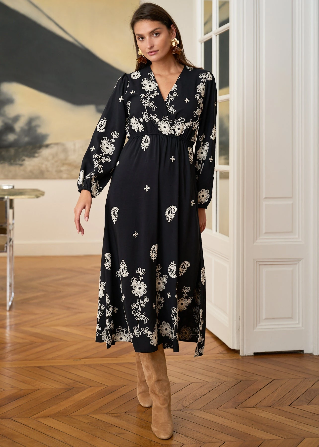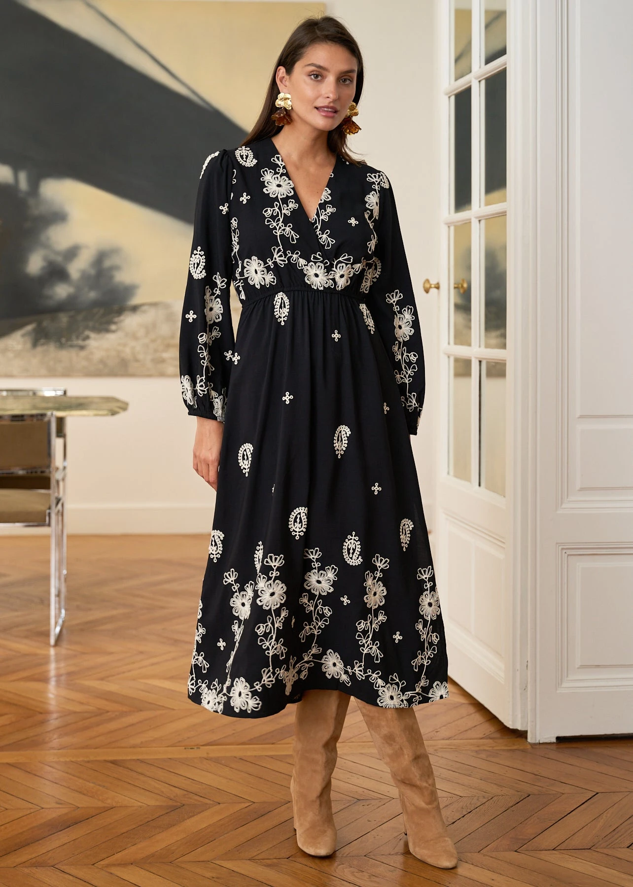 – Robe longue brodée en viscose
